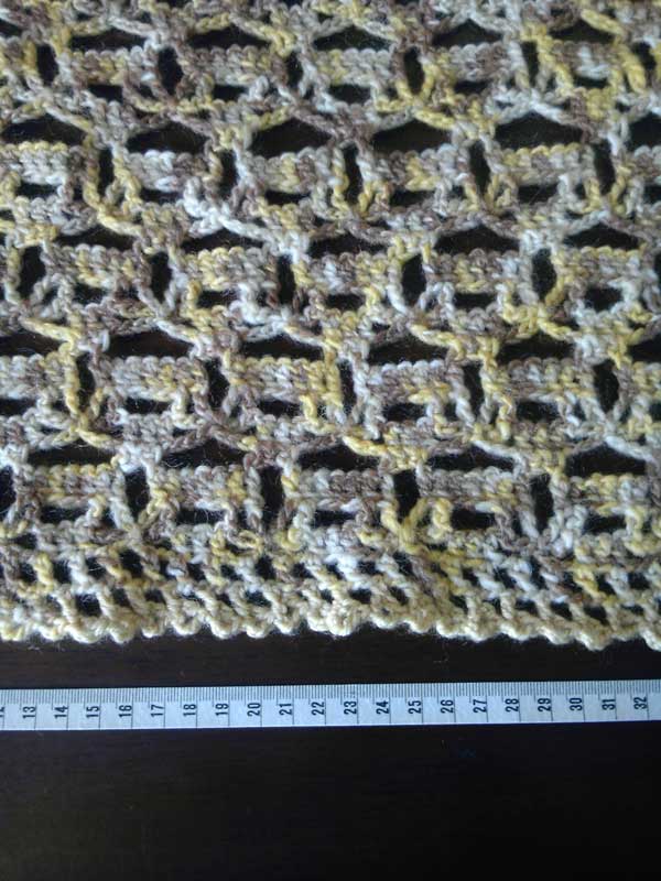 完成の大きさは40×150と書いてあったけれど、同じ目数で作り始めたら