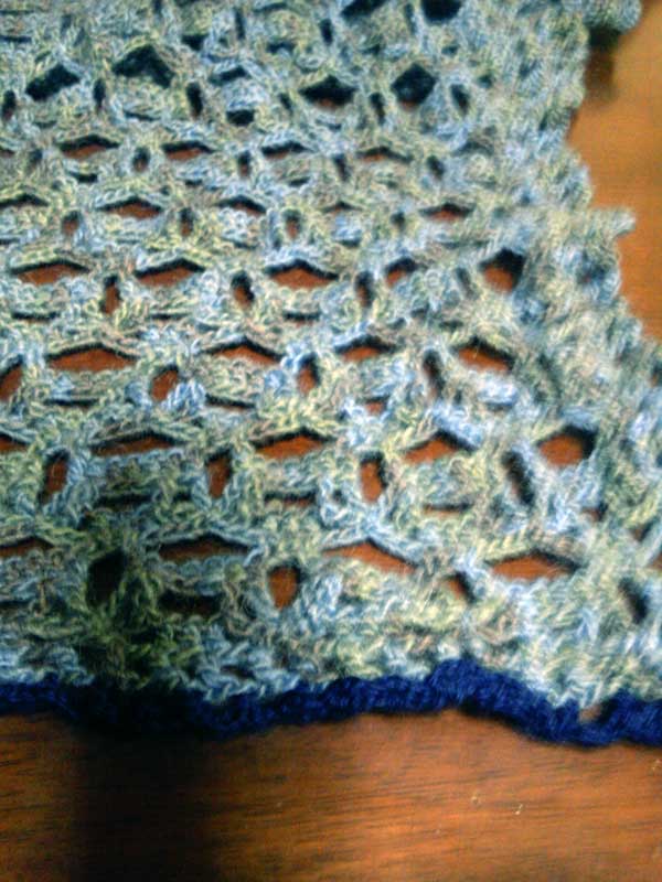 で、何だったら気に入るかと色々考えてストールに編みなおしてみた。