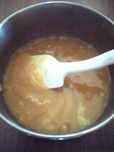 混ぜ始めて熱湯を入れてしばらくした時。何となくプリン石けんの意味が分かった気が。