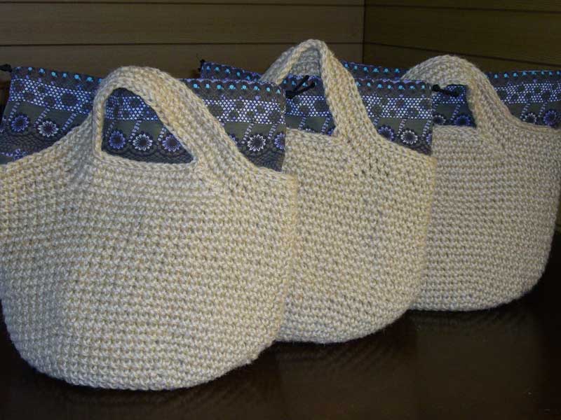 こちらはお弁当箱入れ用にと以前作ったバッグがデロンデロンになってしまったので、それを解いて編みなおしました。