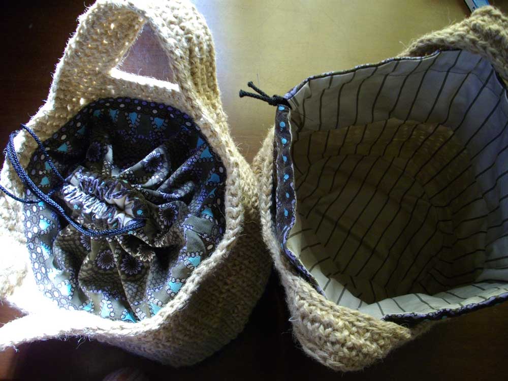 参考にした本は持っている「麻紐で作るバッグと雑貨」雄鶏社。