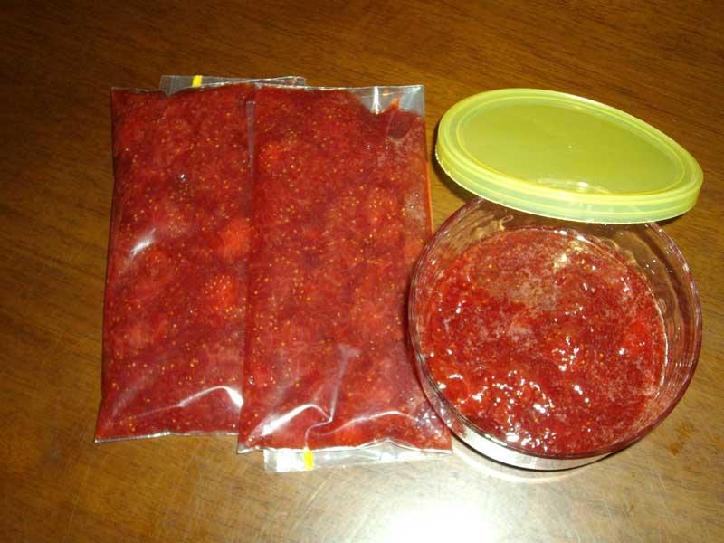 砂糖はイチゴの半分の重量位入れるのでしょうが、出来上がりの半分は密閉保存袋に入れて冷凍しちゃうので、いつもあまり入れません。